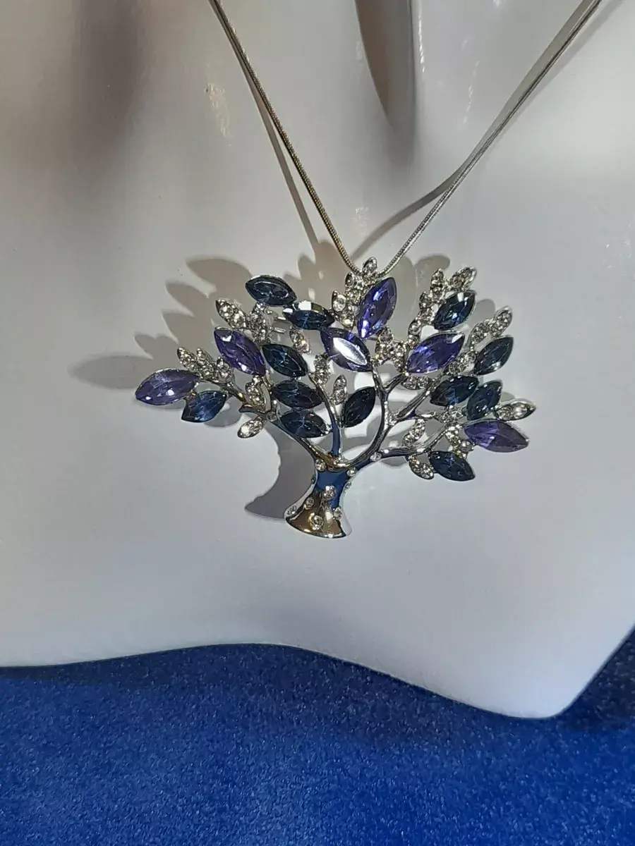 Брошь-кулон "Дерево большое с голубыми стразами"