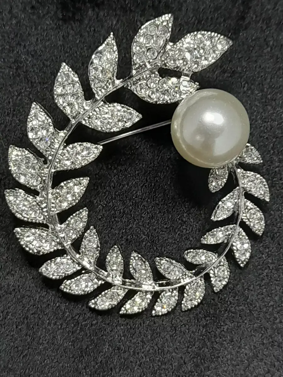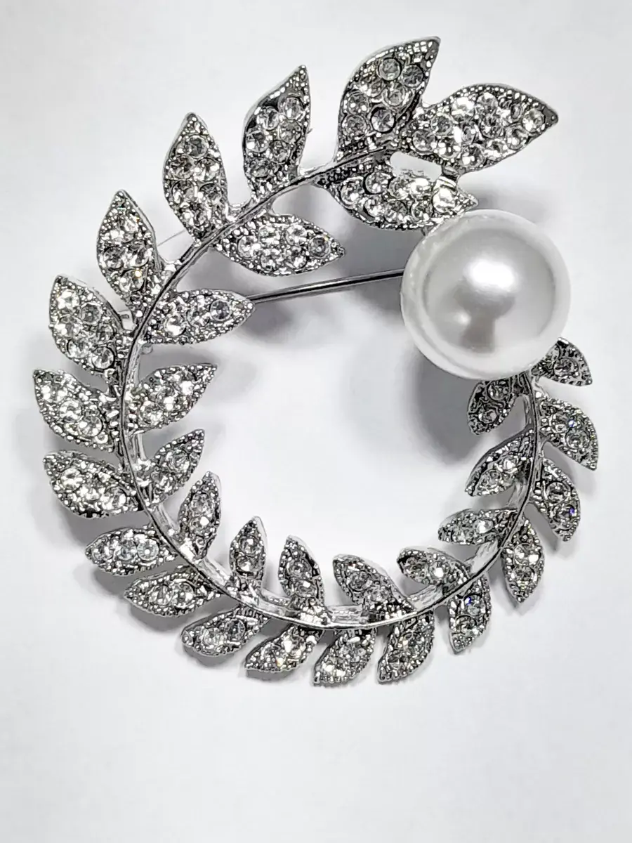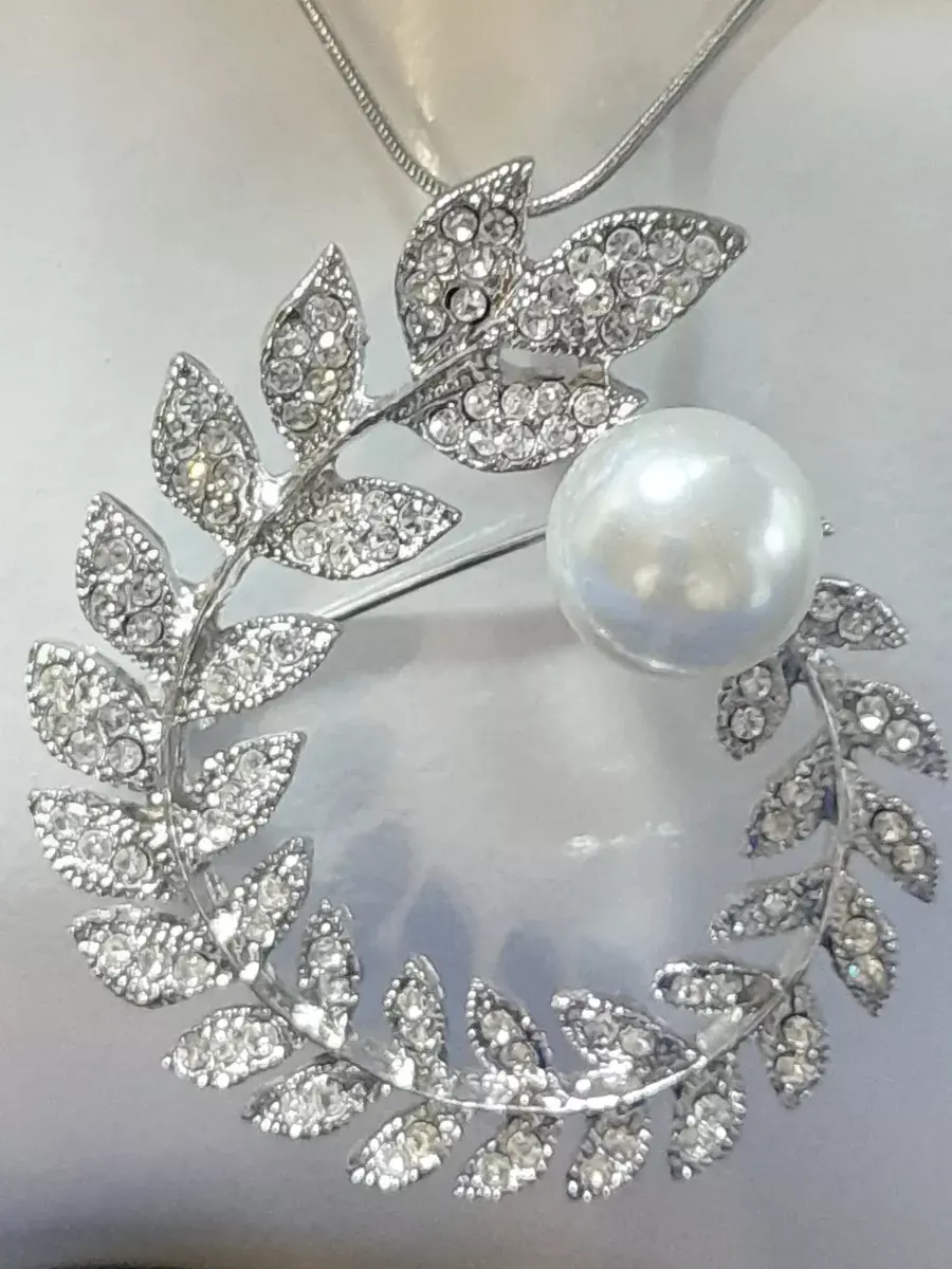 Брошь-кулон "Ветка-венок с жемчужиной"