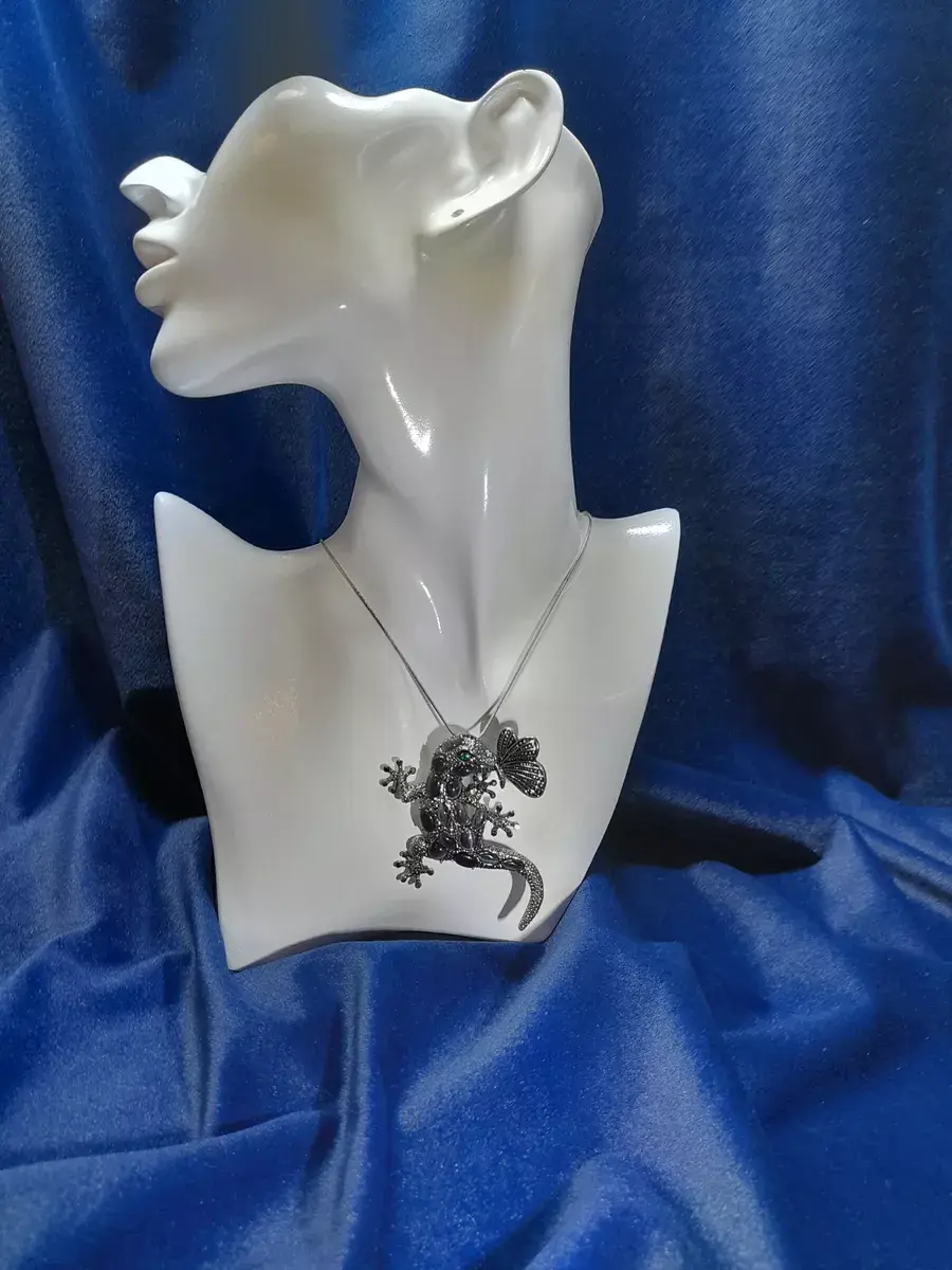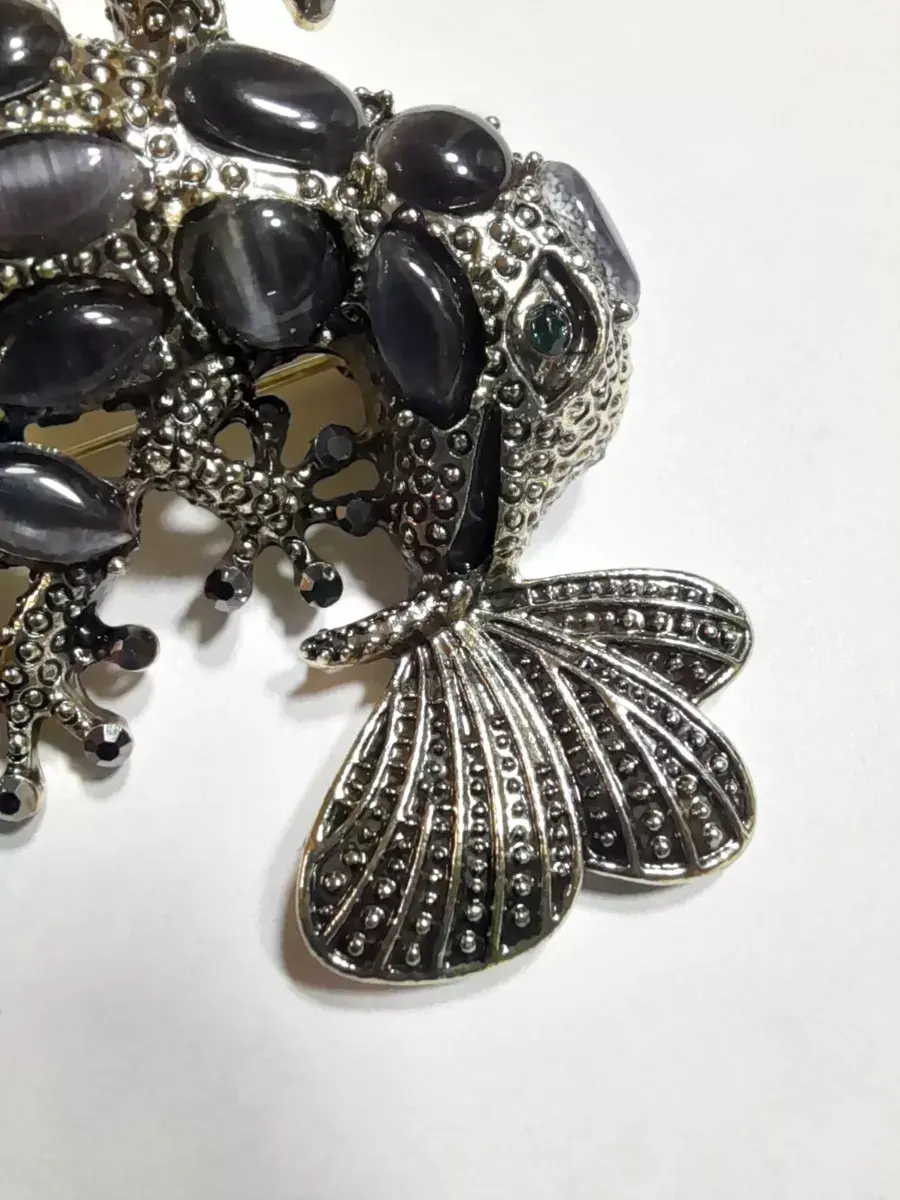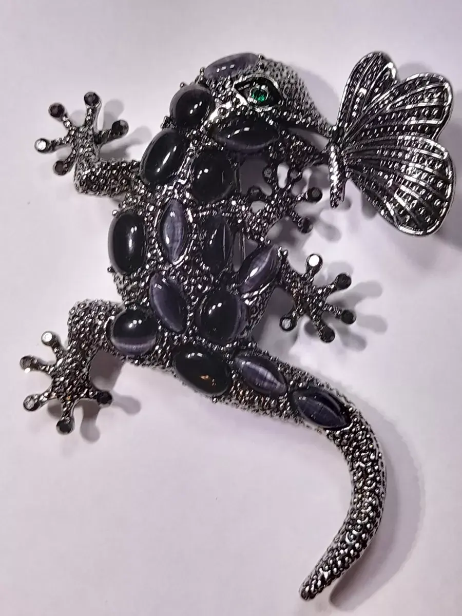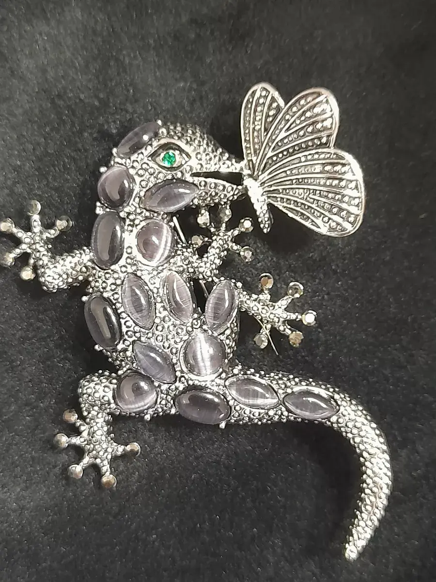 Брошь-кулон Ящерица с бабочкой серебро античное
