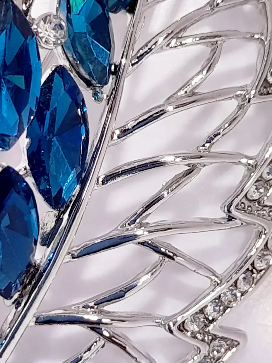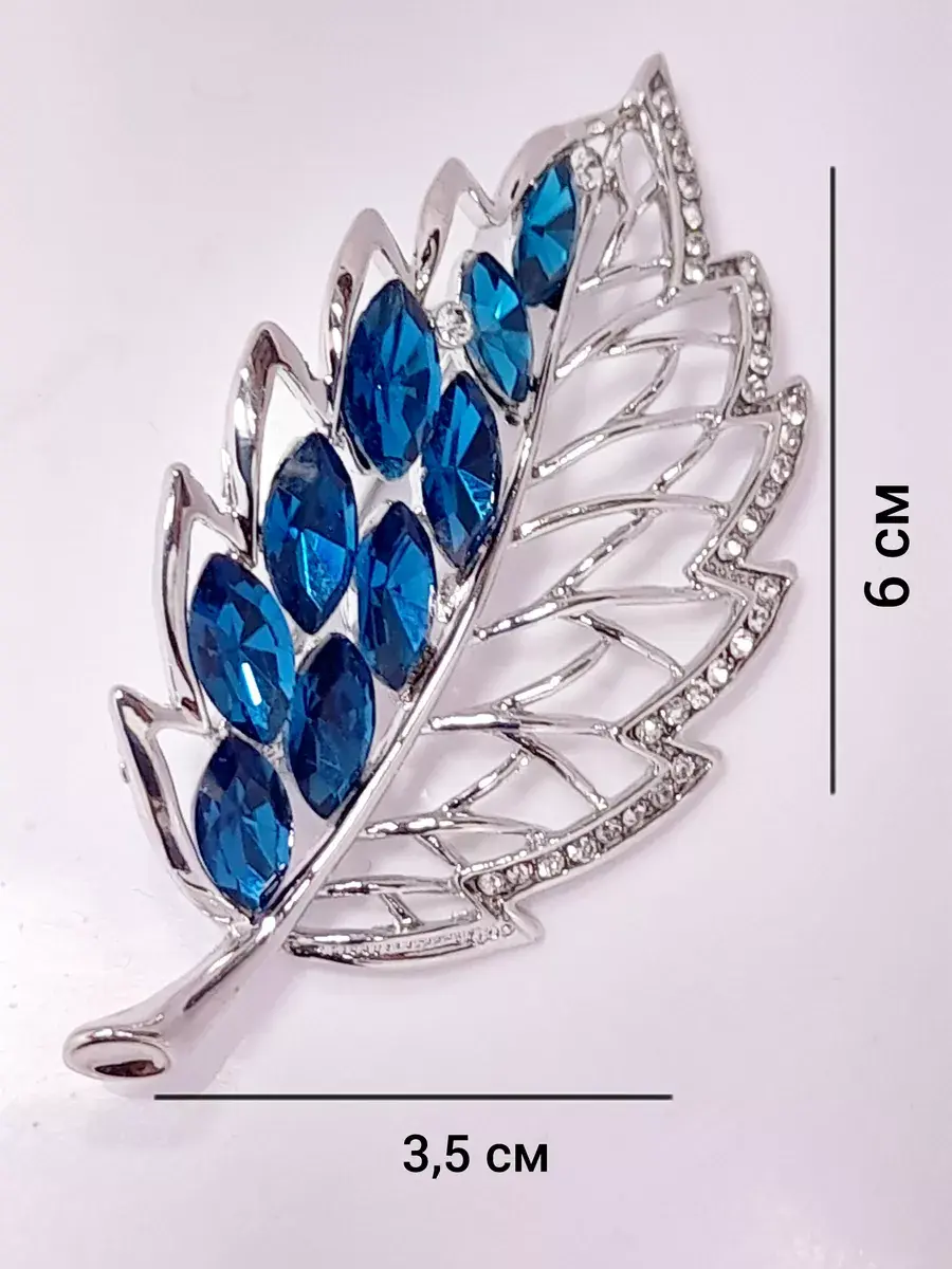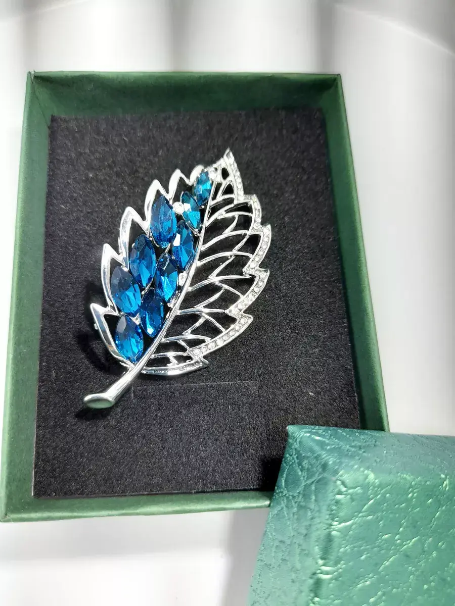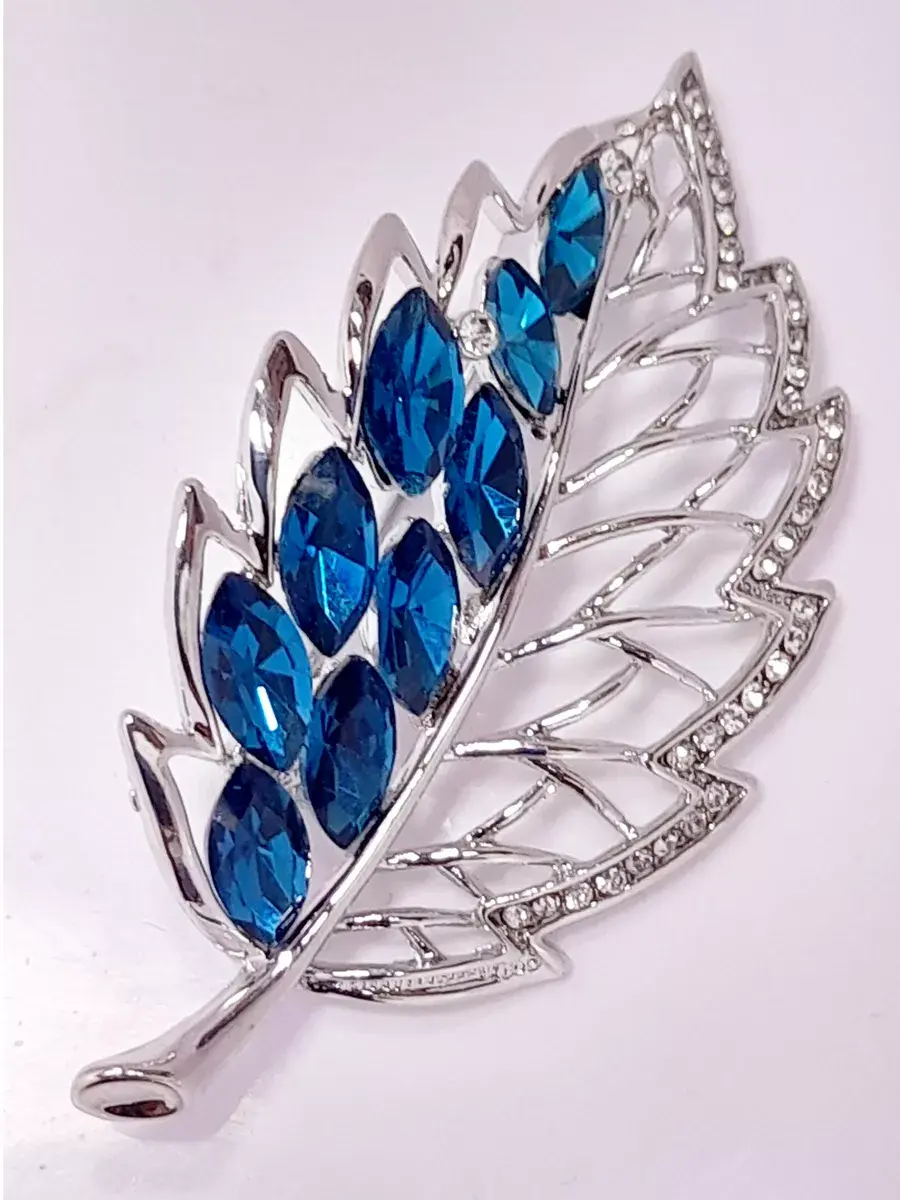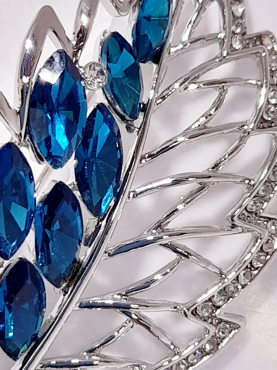 Брошь "Лист с голубыми стразами"