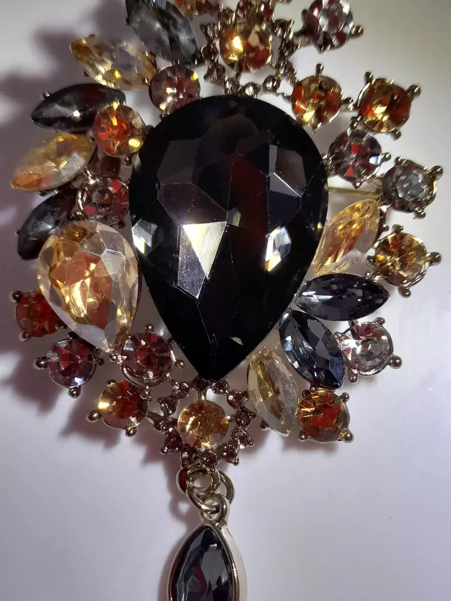 Брошь Винтажная большой центральный страз цвета раухтопаз