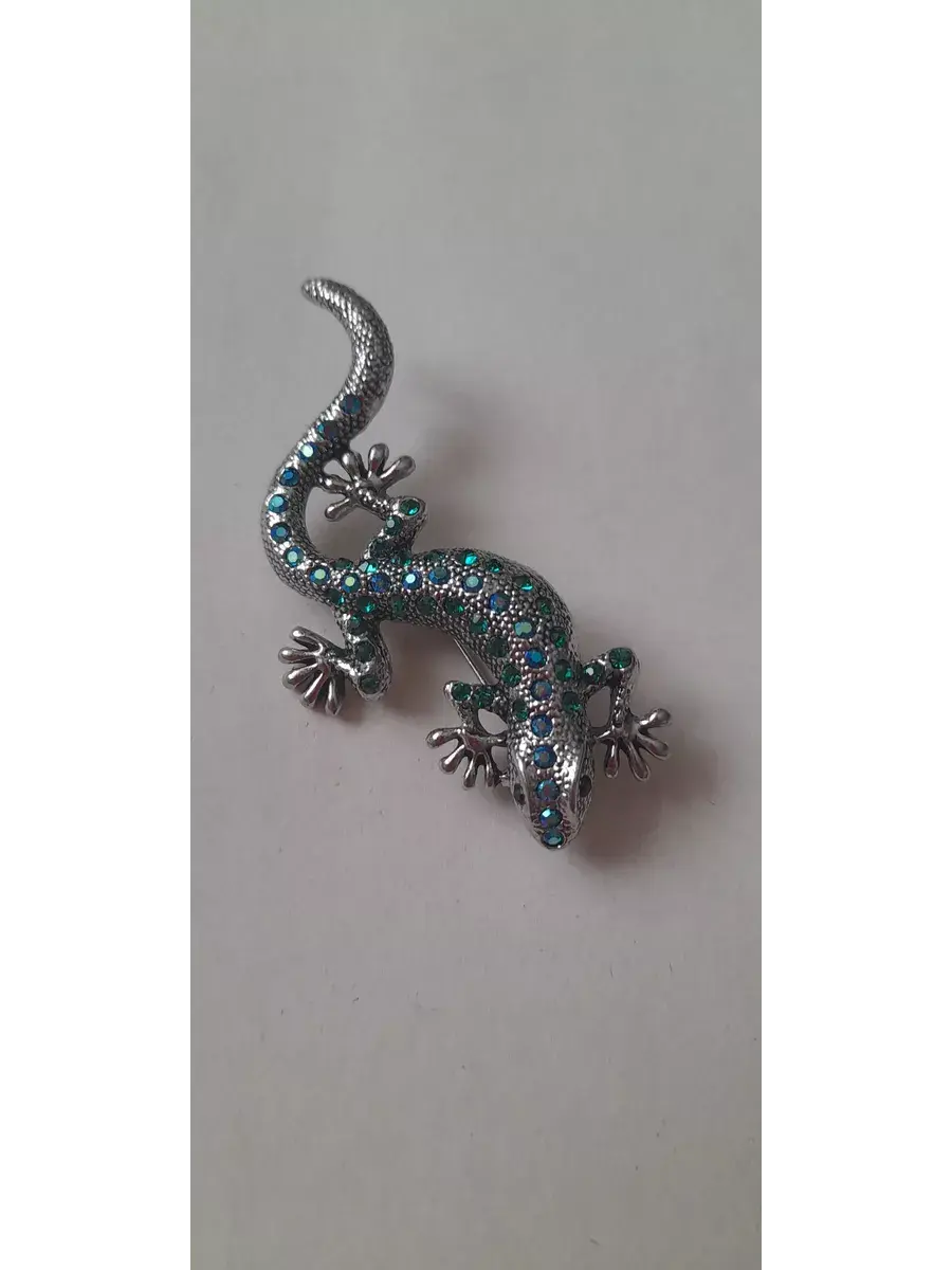 Брошь ящерица с зелёными стразами