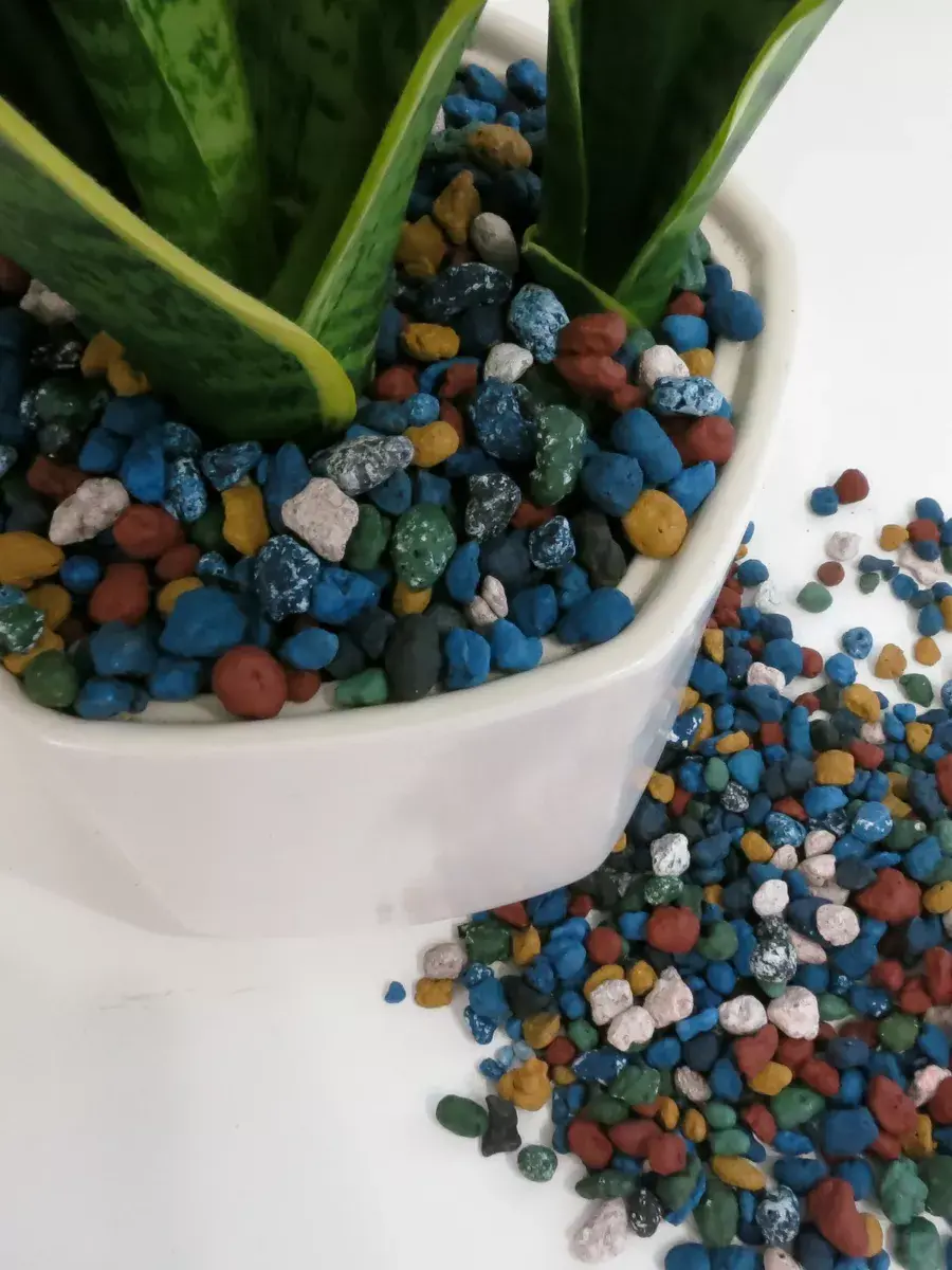 Цветной дренаж керамзитовый мелкой фракции 5-10 мм - объем 4 л для декорирования и ухода за растениями и керамзит некрашеный дренаж для растений фракции 4 – 6 мм, 5-10 мм и 10-20 мм - объем 1 л. Керамзит для комнатных растений, таких, как фикуса, фиалки, кактуса, суккулента и др. Технология окрашивания разработана нашей компанией. Цветное покрытие керамзита водостойкое, не токсично, без запаха. Керамзит сохраняет все свои свойства после окрашивания. Дренаж керамзитовый декоративный препятствует закислению грунта, оптимизирует влаго- и воздухообмен, исключает на поверхности плесени и мхов, помогает растениям переносить периоды вынужденной засухи. Камни закладываются как на поверхность грунта (цветной керамзит), так и на дно цветочного горшка, кашпо (некрашеный керамзит). Защищает растение от загнивания. Создает комфортную среду для работы почвенных микроорганизмов. Также используется как камушки в качестве декора.