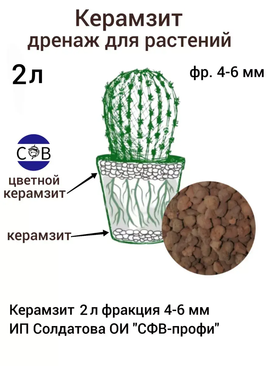 Цветной дренаж керамзитовый мелкой фракции 5-10 мм - объем 1 л, 2 л для декорирования и ухода за растениями и керамзит некрашеный дренаж для растений фракции 4 – 6 мм, 5-10 мм и 10-20 мм - объем 1 л, 2 л. Керамзит для комнатных растений, таких, как фикуса, фиалки, кактуса, суккулента и др. Технология окрашивания разработана нашей компанией. Цветное покрытие керамзита водостойкое, не токсично, без запаха. Керамзит сохраняет все свои свойства после окрашивания. Дренаж керамзитовый декоративный препятствует закислению грунта, оптимизирует влаго- и воздухообмен, исключает на поверхности плесени и мхов, помогает растениям переносить периоды вынужденной засухи. Камни закладываются как на поверхность грунта (цветной керамзит), так и на дно цветочного горшка, кашпо (некрашеный керамзит). Защищает растение от загнивания. Создает комфортную среду для работы почвенных микроорганизмов. Также используется как камушки в качестве декора.