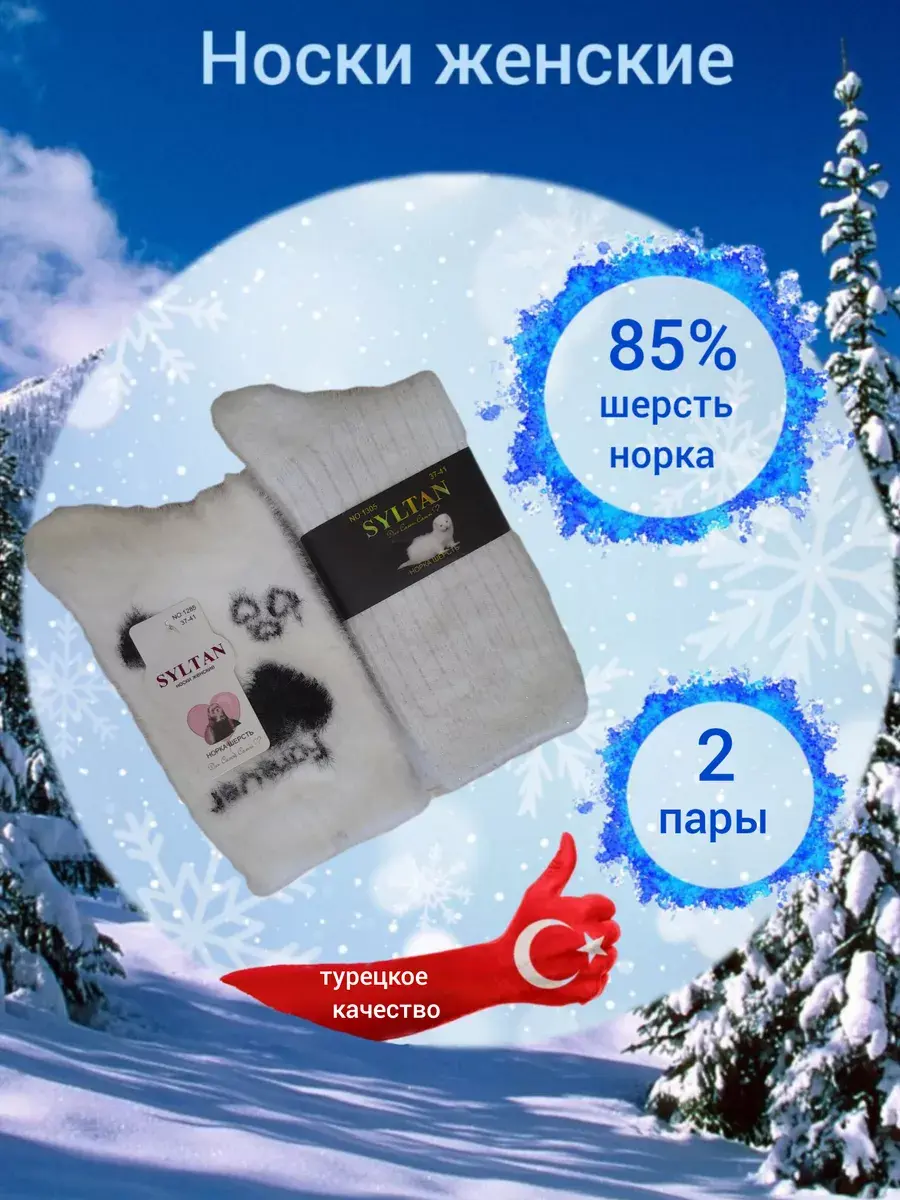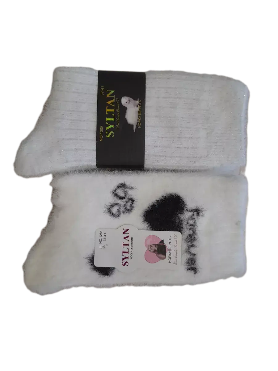 Носки теплые женские норка набор состоит из 2 пар. Первая пара – цветные, вторая пара – белые с люрексом.