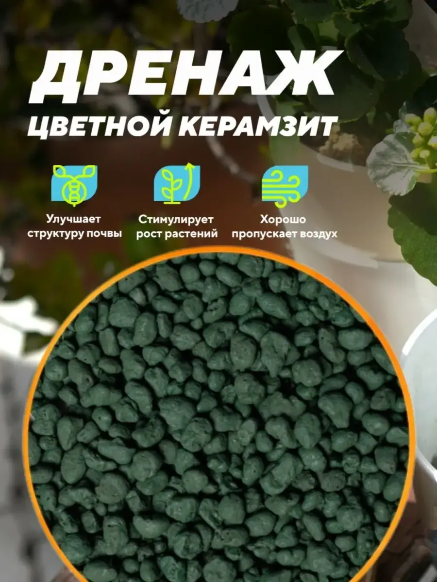 Цветной дренаж керамзитовый мелкой фракции 5-10 мм - объем 2 л для декорирования и ухода за растениями. Больше объем меньше цена в магазине продавца. Керамзит для комнатных растений, таких, как фикуса, фиалки, кактуса, суккулента, орхидеи. Технология покрытия разработана нашей компанией. Цветное покрытие керамзита водостойкое, не красится, не токсично, без запаха. Керамзит сохраняет все свои свойства после покрытия. Дренаж керамзитовый декоративный препятствует закислению грунта, оптимизирует влаго- и воздухообмен, исключает на поверхности плесени и мхов, помогает растениям переносить периоды вынужденной засухи. Камни закладываются как на поверхность грунта, так и на дно цветочного горшка, кашпо. Защищает растение от загнивания. Создает комфортную среду для работы почвенных микроорганизмов. Также используется как камушки в качестве декора.